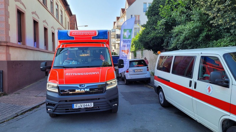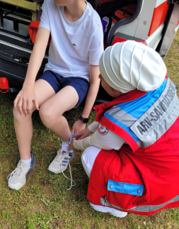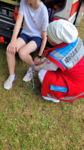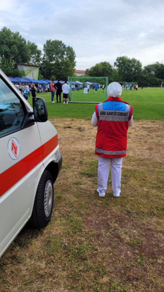 Der Allgemeine Rettungsverband war - wie letztes Jahr - mit einem Einsatzfahrzeug und zwei Sanitätshelfern für Erste-Hilfe-Leistungen dabei. Leider musste an diesem Nachmittag 4 x der Rettungswagen und einmal Notarzt gerufen werden: Obwohl es nicht so warm war kollabierte ein Mann direkt vor unserem Einsatzfahrzeug und fiel mit dem Kopf auf den Asphalt. Ein anderer verdrehte sich das Knie und hatte sehr starke Schmerzen. Ein 14 Jahre altes Mädchen hatte starke Panikattacken und hyperventilierte. Sie hatte starke Atemnot und Schwindel. Auch einen Sturzunfall mit Hautablederungen, Besucher mit Schürfwunden und mehrere Schnittwunden wurden von uns versorgt.